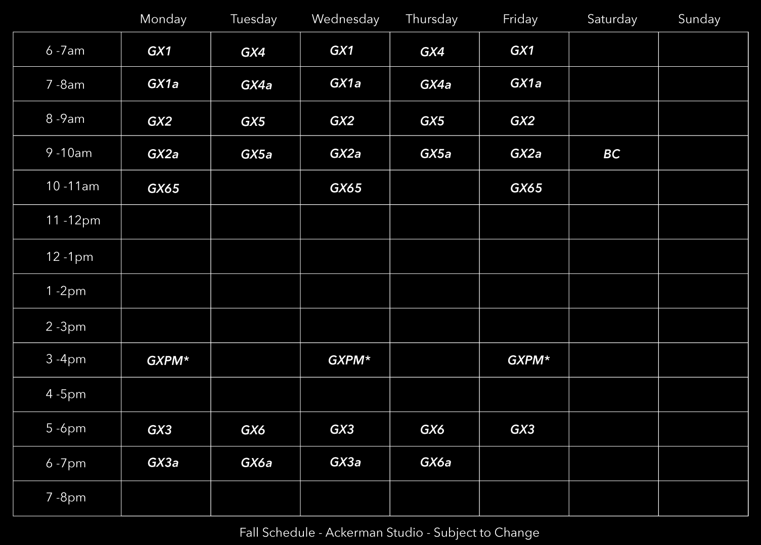 GX sessions meeting 3 times each week: $325 per month or $87 per week (yes, you can pay weekly)